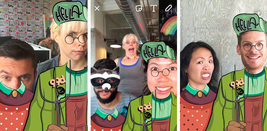 To fit in with the theme of celebrating design, our Snapchat filter community contest asked designers to put a graphic design spin on famous artworks. Designer Andrei Matei, otherwise known as M.SPLAZH, delivered a Bay Area spin of Grant Wood’s American Gothic (which he aptly dubbed, “Hella Gothic”) for our Oakland office. Meanwhile, our Melbourne office decorated their Snap selfies with a beautiful graphic rendition of Magritte’s Son of Man, designed by Luz Diaz (Bananodromo).