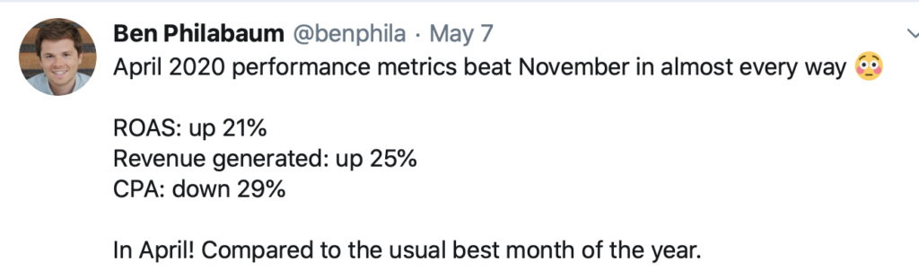 eCommerce brands are benefitting right now from a lot of advertisers pulling back and more people spending time on their phones. These two actions combined then signaled lower CPMs.