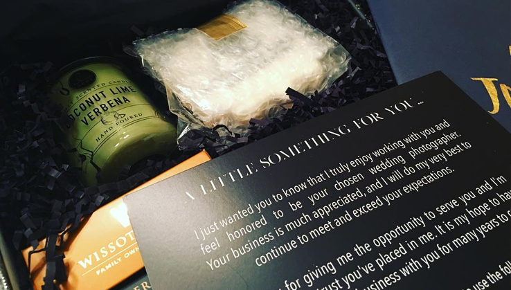 Imagine receiving wedding photos in the mail after the big day. It’s certainly exciting, and Ashleigh Bing has taken it a step further to make it a truly luxe experience. With matte black boxes, it feels velvety and looks extra elegant to the recipient.